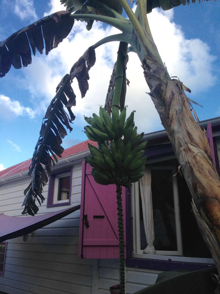 Hier in der Karibik wachsen nicht nur die uns bekannten Obst Bananen im Garten, sondern auch Banana Plantain (Kochbananen). Diese „Gemüsebanane“ oder „Mehlbanane“ genannt, schmeckt roh sehr mehlig und wird daher meist gebraten, frittiert, gebacken oder gekocht verzehrt.