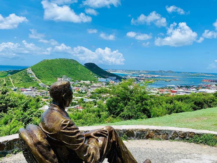 Kurz nachdem wir vom Hafen in Philipsburg aus gestartet sind, ist unser erster Stopp nicht weit. In der Marina in Oyster Pond (Fotostopp) befindet sich die holländisch-französische Grenze und wir zeigen unseren Gästen dort, wie es um die Landesgrenzen und die Landesunterschiede bestellt ist. Kurz darauf fahren wir weiter zum Aussichtsturm Rotary (Fotostopp). Nun werden alle unsere Gäste erst einmal richtig begrüßt und wir stoßen miteinander an. Von dem Aussichtsturm hat man einen weiten Blick über den Atlantik bis hin nach St. Barth. Hier machen wir unser Gruppenfoto (nur wer möchte).