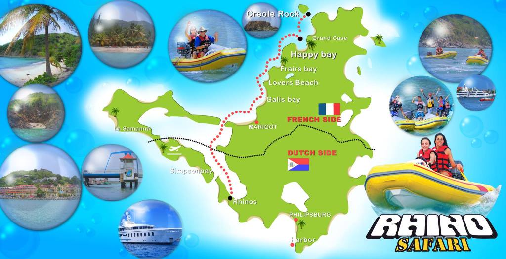 Die Touren starten in Simpson Bay im Yachthafen und führen durch die Binnenlagune zur französischen Seite der Insel. Eurer englischsprachiger Guide führt Euch ca. 1 Stunde lang vorbei an Marigot, Friars Bay, Happy Bay, bzw. beim Schnorcheln bis nach Grand Case. Beim Beach Stop bleibt Ihr am Happy Bay, einem der schönsten und ruhigsten Strände der Insel. Zum Schnorcheln bleibt ihr im Marine Park am Creole Rock bevor es dann wieder zum Yacht Hafen auf der holl. Seite zurück geht. Ihr kommt den Megayachten ganz nah, ihr seht die Insel von der Wasserseite aus, erlebt das karibische Meer hautnah – in der Zeit bleibt nichts bleibt trocken! Schnorcheln am Creole Rock – oder Baden am Happy Bay, beides ein tolles Erlebnis und eine Riesen Gaudi!