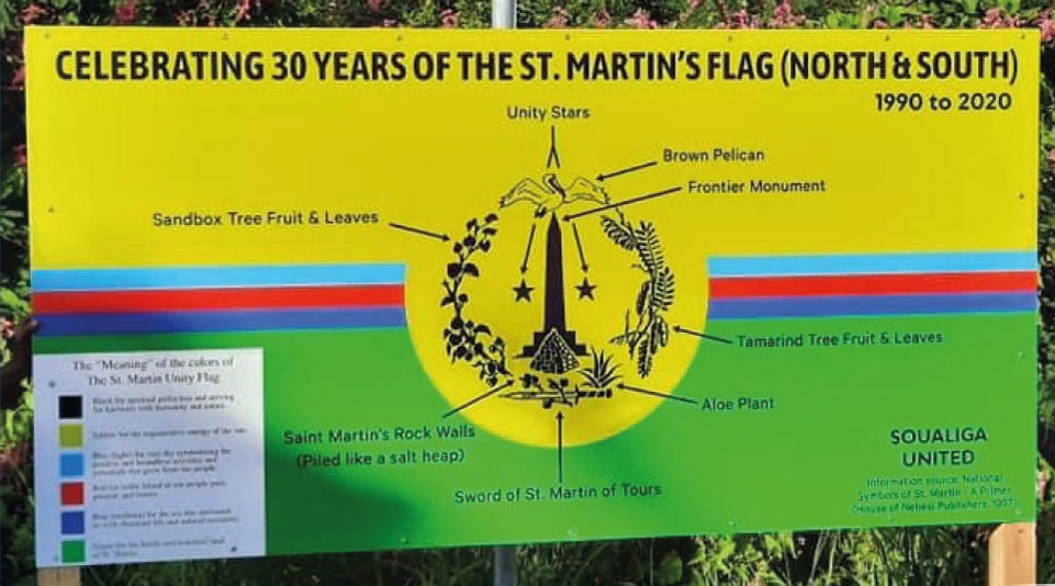 Im Jahre 1648 haben Franzosen und Holländer die Insel unter sich aufgeteilt und somit bekam die Insel 2 Fahnen. Bis heute weht die Französische Fahne und die Fahne Sint Maarten am Grenzstein.