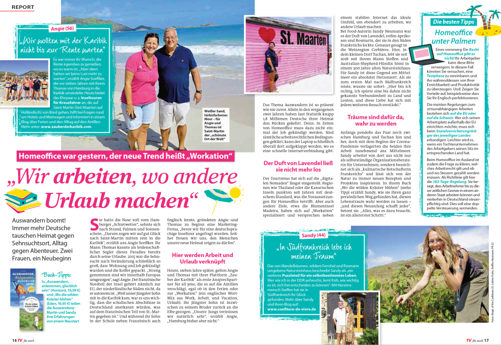 Heute, sieben Jahre später, gelten Angie und Thomas mit ihrer Plattform „Zauber der Karibik“ als erste Ansprechpartner für all jene, die es auf die Antillen verschlägt, egal ob in den Ferien oder zur „Workation“ (ein englischer Wort-Mix aus Work, Arbeit, und Vacation,Urlaub). Ihr jüngster Sohn ist inzwischen zu seinem Bruder zurück an die Elbe gezogen. „Unsere Jungs vermissen wir natürlich sehr“, erzählt Angie, „Hamburg bisher aber nicht.“