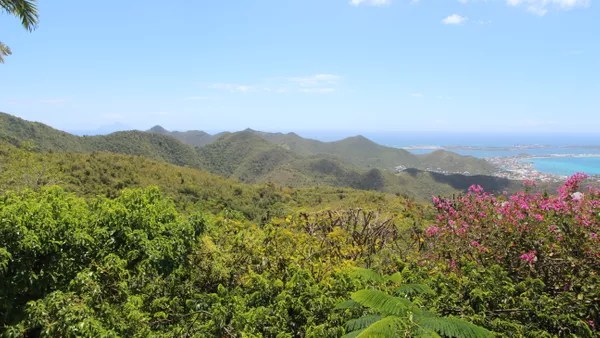 Grüne Hügel machen das Inselinnere von St. Martin aus. Auch Wanderinnen und Wanderer kommen hier auf ihre Kosten.