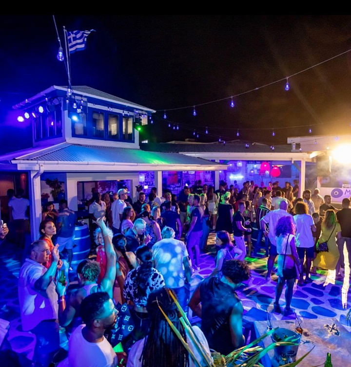 Mykonos Lasst die Party beginnen! Der Open-Air Nachtclub Mykonos öffnete am Dienstag, den 7. März, seine Türen für die Besucher des SXM-Festivals und lud zu einer Warm-up-Party ein.