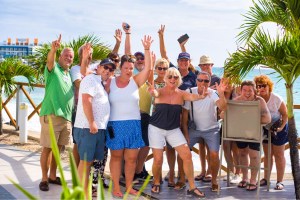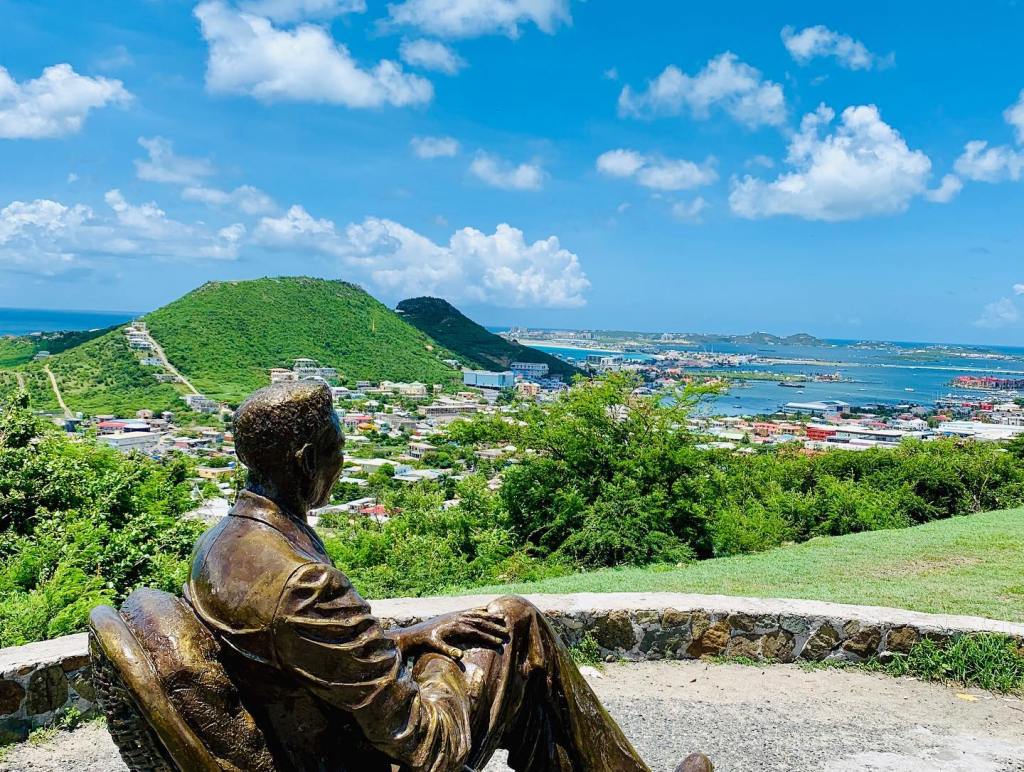 Kurz nachdem wir gestartet sind, ist die Landesgrenze nicht weit. In der Marina in Oyster Pond befindet sich die holländisch-französische Grenze und wir zeigen unseren Gästen dort, wie es um die Landesgrenzen und die Landes-Unterschiede bestellt ist. Kurz darauf fahren wir weiter zum Aussichtsturm Rotary (Fotostopp). Nun werden alle unsere Gäste erst einmal richtig begrüßt und wir stoßen miteinander an. Von dem Aussichtsturm aus hat man einen weiten Blick über den Atlantik zu den Nachbarinseln bis hin nach St. Barth.